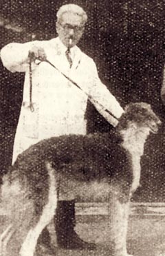 M.Teissonnière présentant sa femelle CRESTA DE L'ERMITAGE à l'exposition de Paris 1933